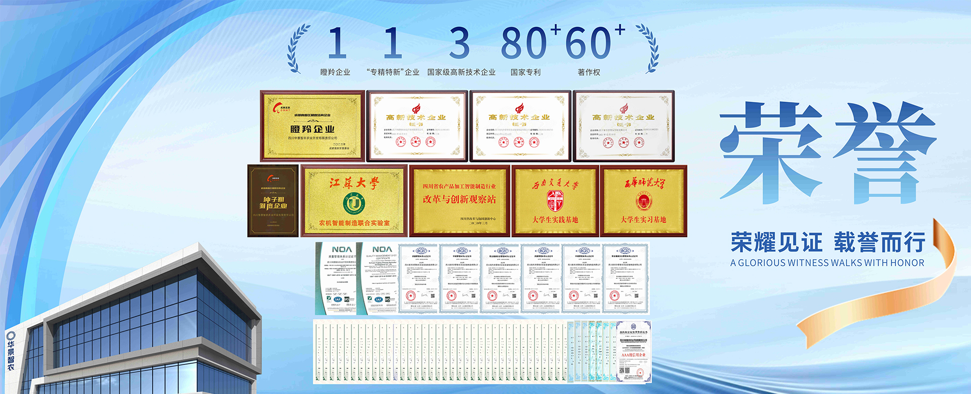 四川华景智农是一家集科研、生产、销售、技术服务于一体的农业全产业链服务型公司。属高新技术企业、科技型中小企业、985院校大学生实践基地,四川省农产品加工智能制造行业改革与创新观察站,目前公司拥有研发中心、生产制造中心、运营管理中心、仓储中心、售后服务中心,同时与国内外多个大型农资公司、产业终端公司、科研院所均保持着深度合作关系。